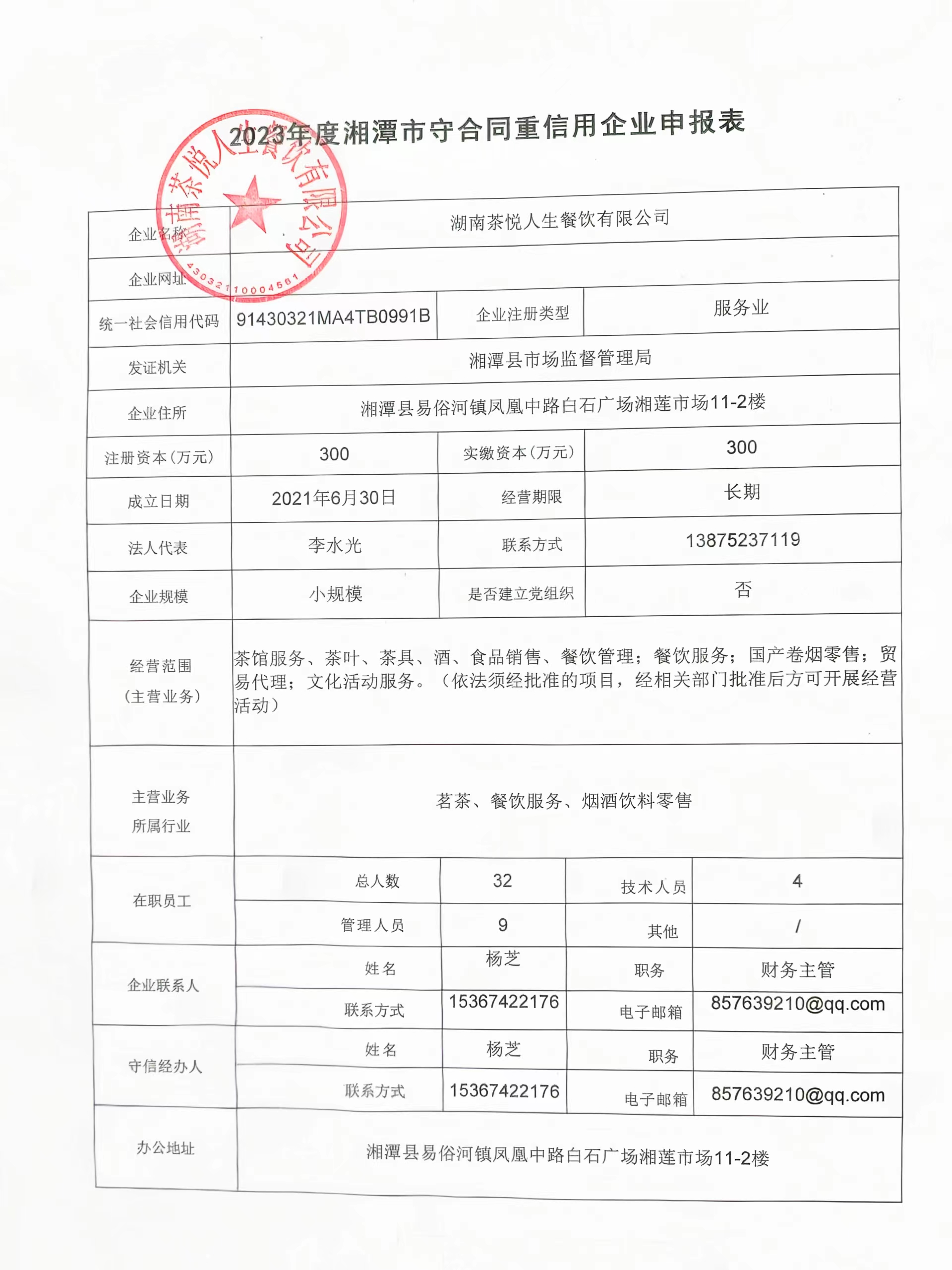 本企業(yè)根據(jù)《湘潭市守合同重信用企業(yè)申報(bào)規(guī)定》等編制 2023 年度企業(yè)信用報(bào)告書,并保證本報(bào)告書內(nèi)容真實(shí)、準(zhǔn)確、完整。