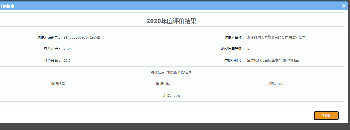 企業(yè)納稅信用等級報(bào)告: