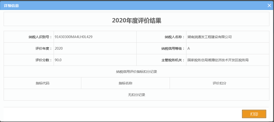 企業(yè)納稅信用等級報告: 潤通發(fā)稅務等級.png