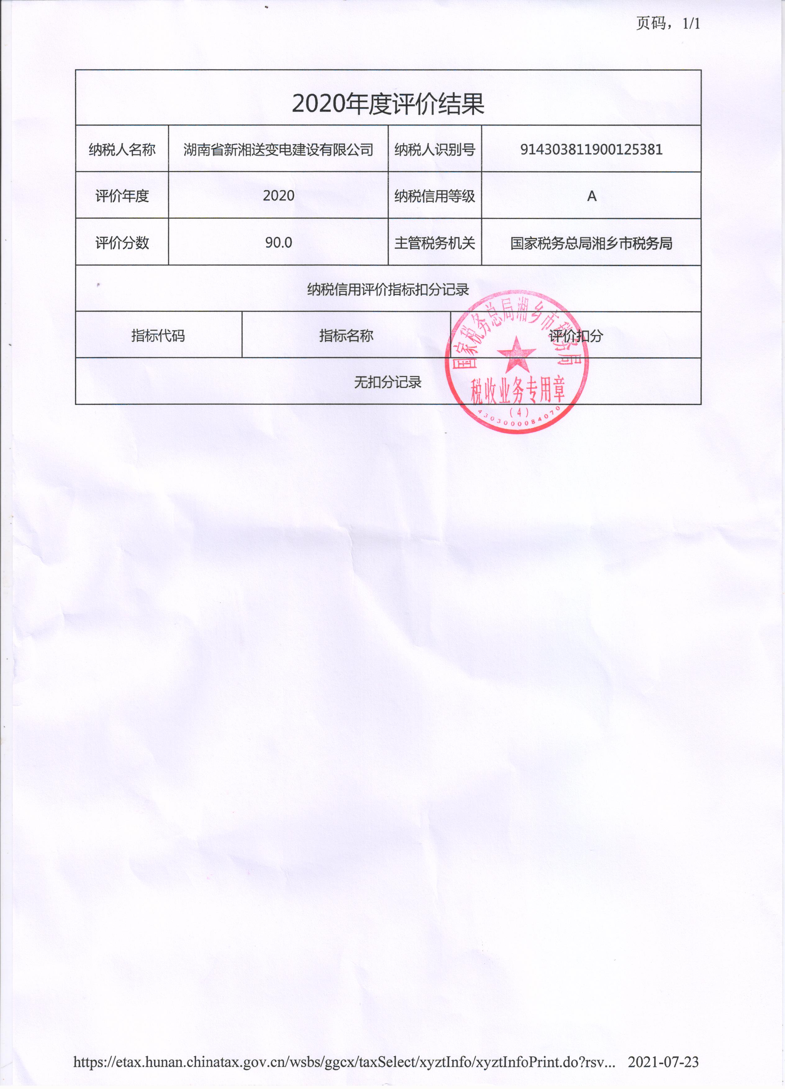 企業(yè)納稅信用等級報告: