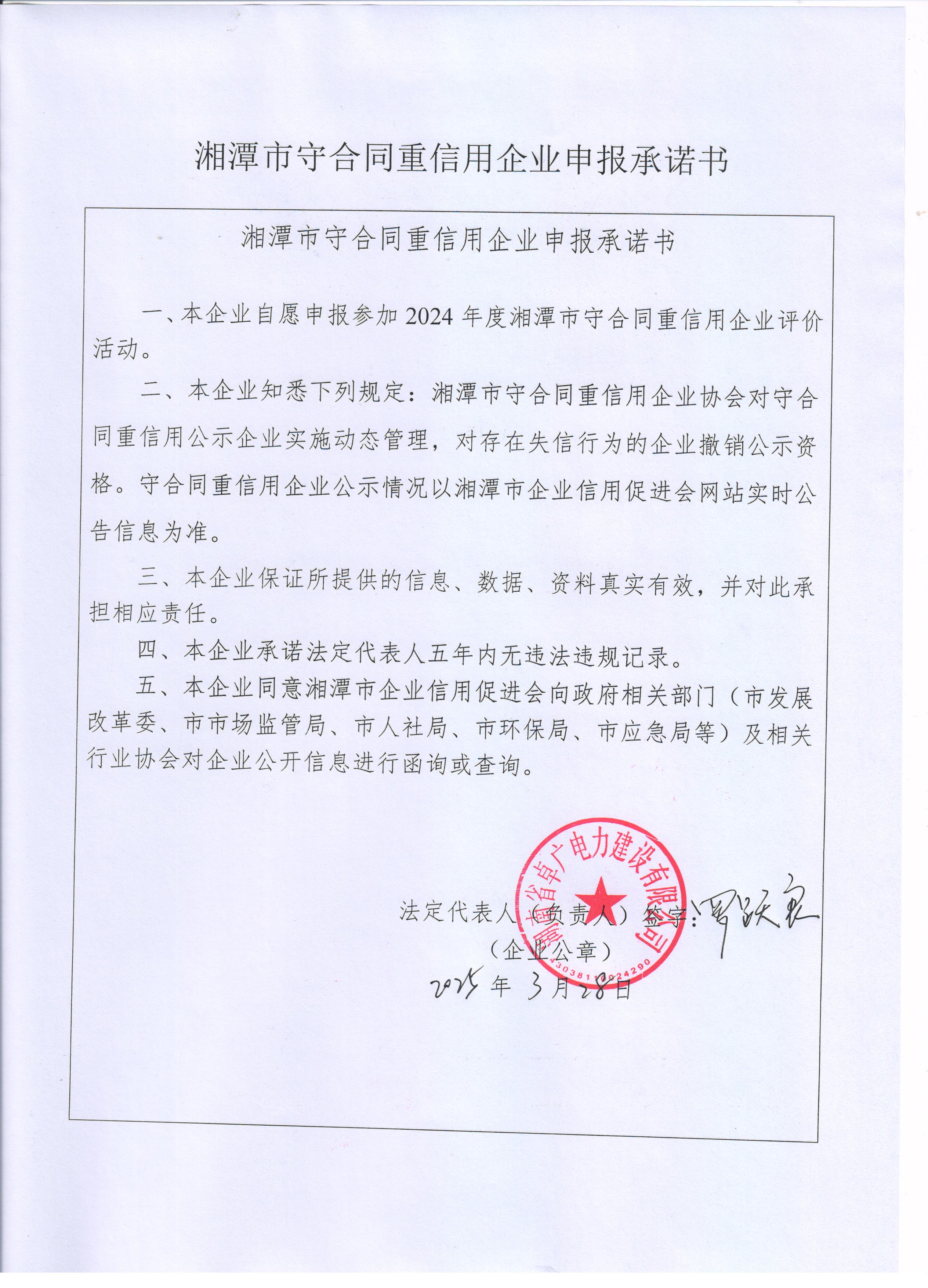 本企業(yè)根據(jù)《湘潭市守合同重信用企業(yè)申報規(guī)定》等編制 2024 年度企業(yè)信用報告書,并保證本報告書內(nèi)容真實(shí)、準(zhǔn)確、完整。