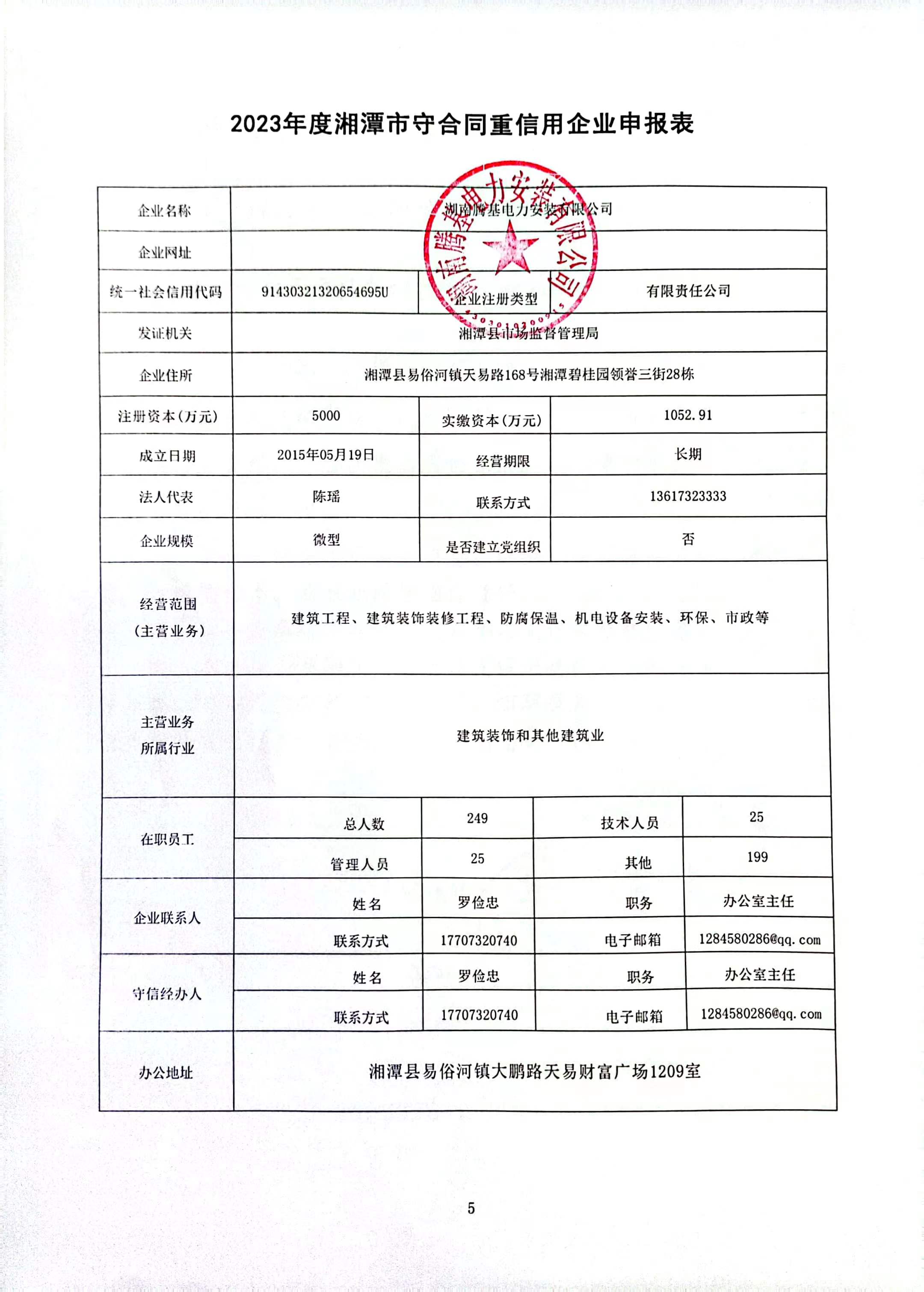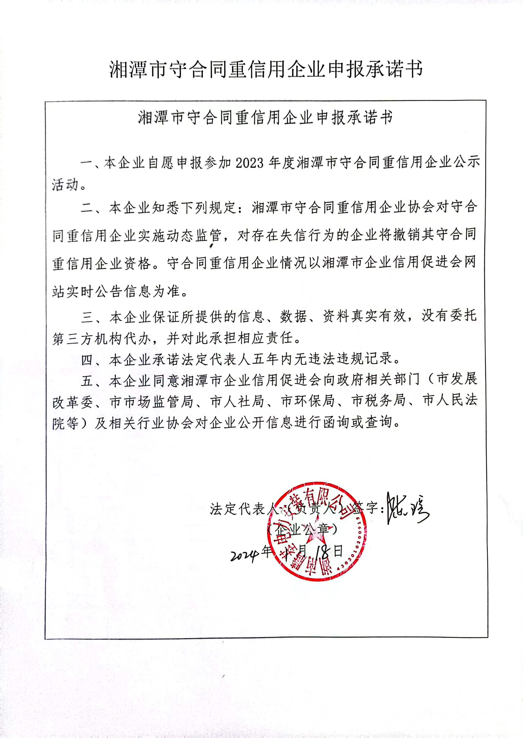 本企業(yè)根據(jù)《湘潭市守合同重信用企業(yè)申報規(guī)定》等編制 2023 年度企業(yè)信用報告書,并保證本報告書內容真實、準確、完整。