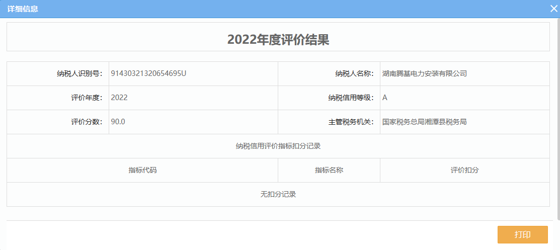 企業(yè)納稅信用等級報告: