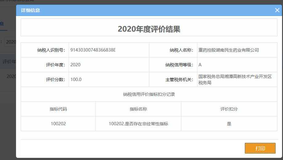 企業(yè)納稅信用等級報告: