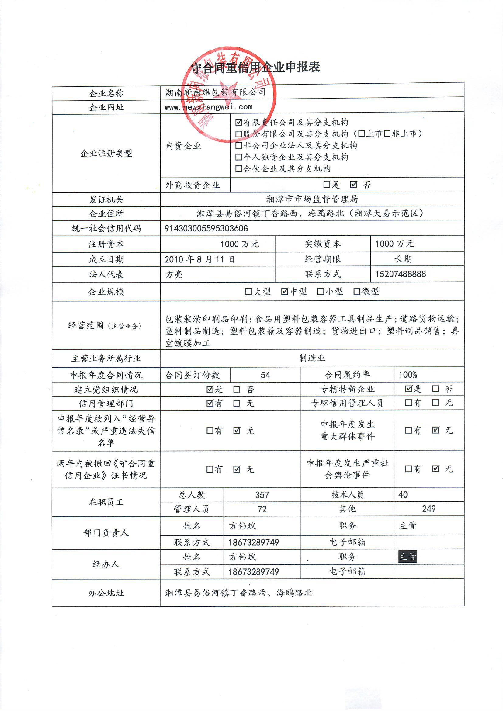 本企業(yè)根據(jù)《湘潭市守合同重信用企業(yè)申報規(guī)定》等編制 2024 年度企業(yè)信用報告書,并保證本報告書內(nèi)容真實(shí)、準(zhǔn)確、完整。