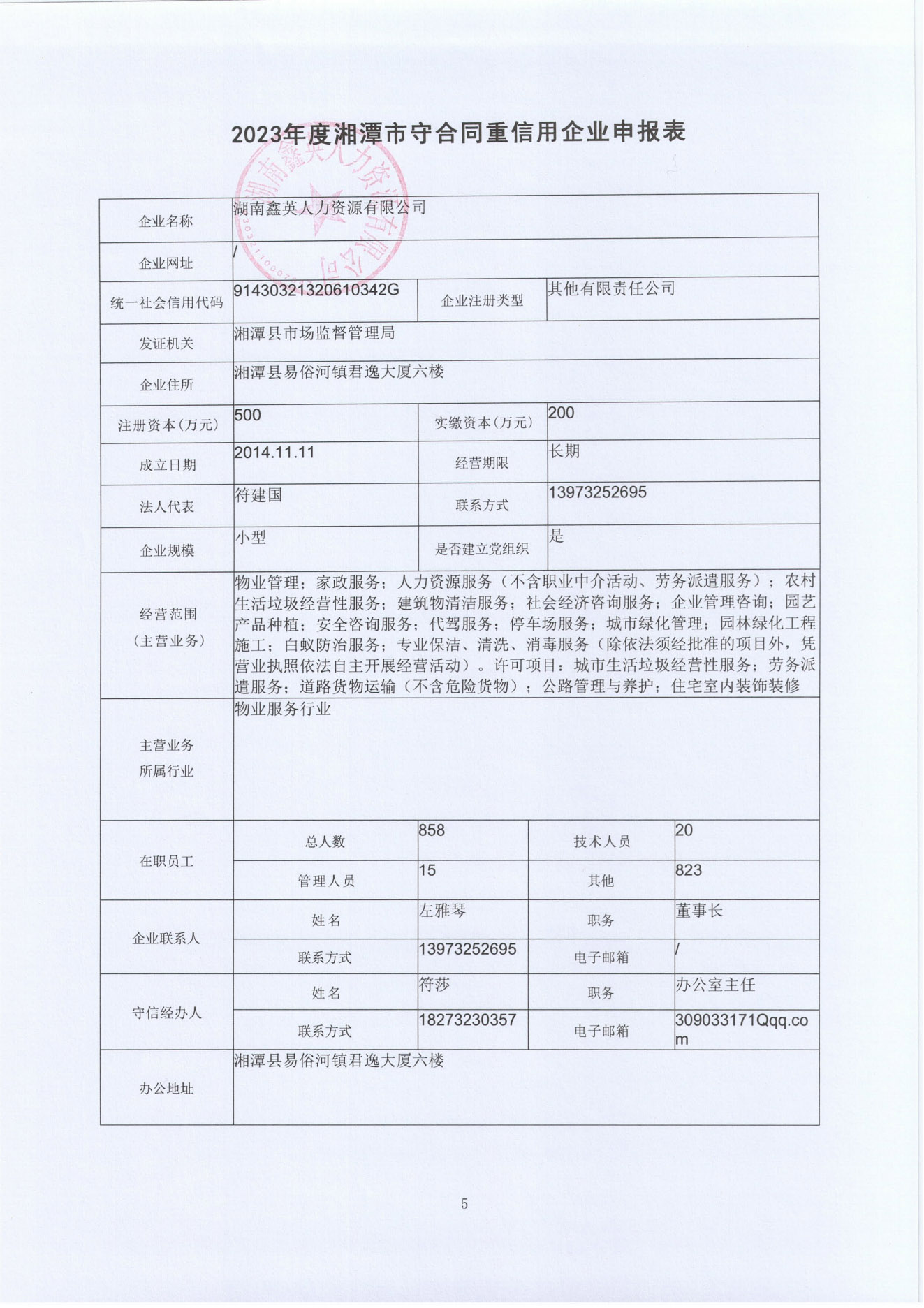 本企業(yè)根據(jù)《湘潭市守合同重信用企業(yè)申報規(guī)定》等編制 2023 年度企業(yè)信用報告書,并保證本報告書內容真實、準確、完整。