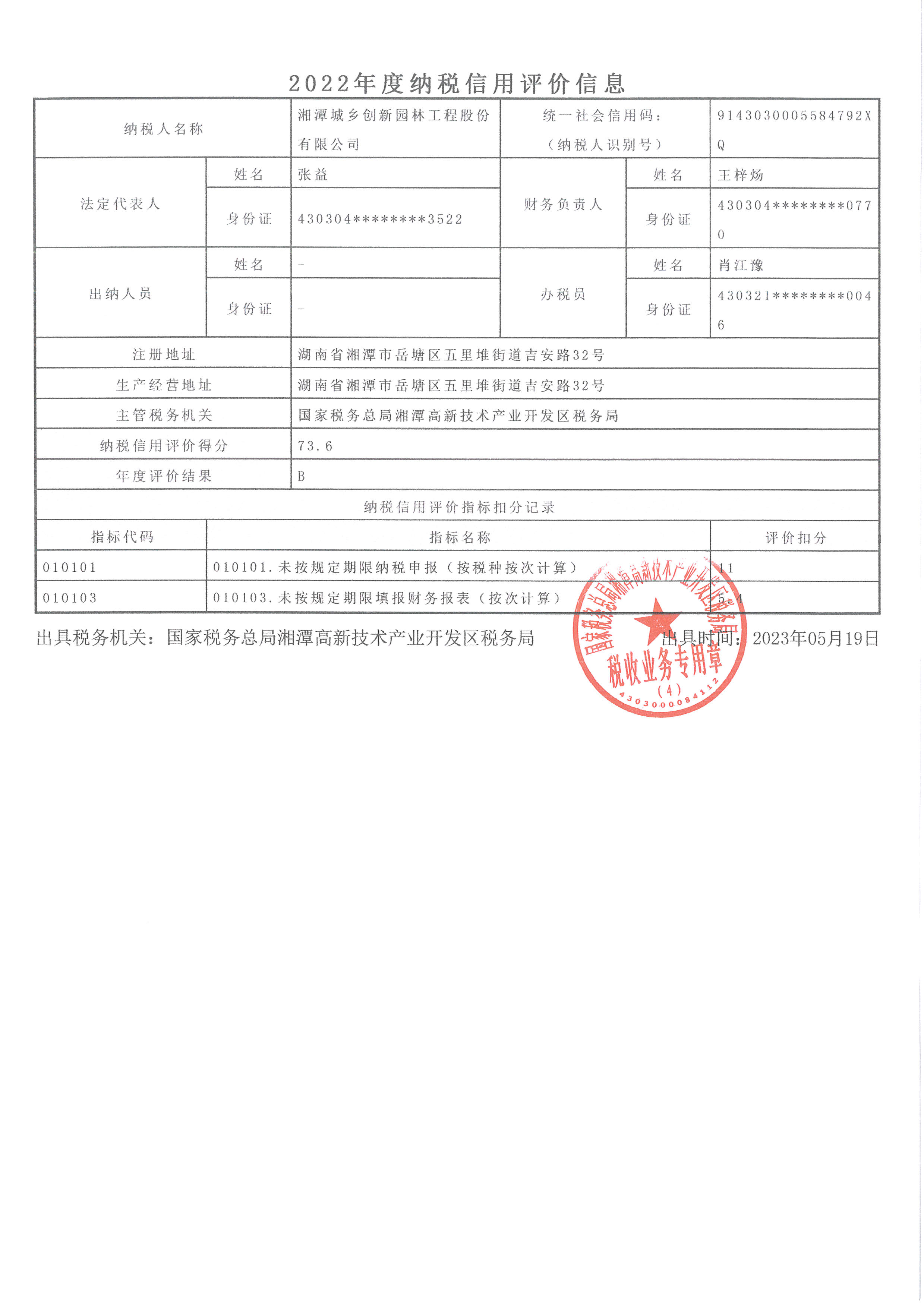 企業(yè)納稅信用等級報告: