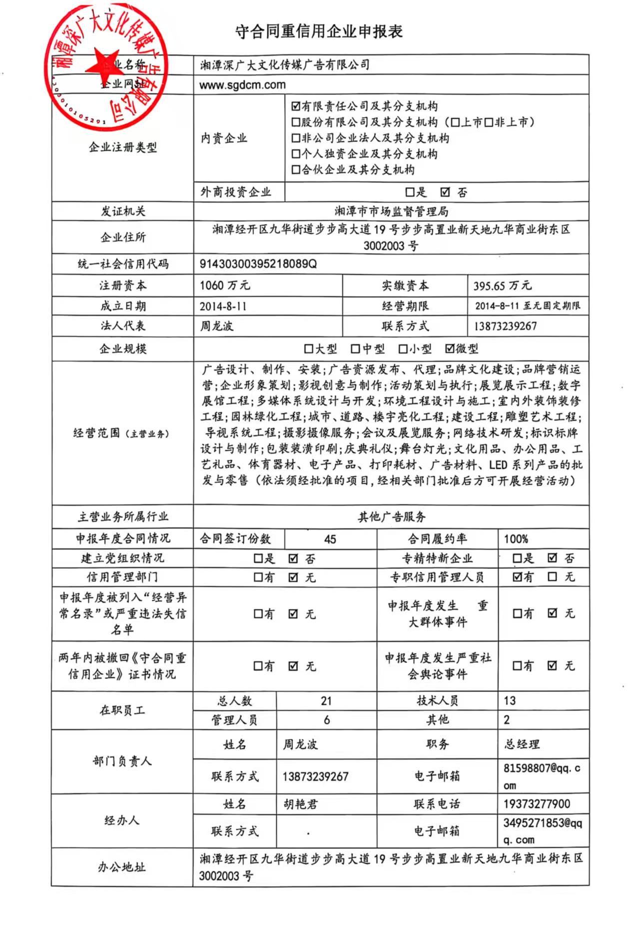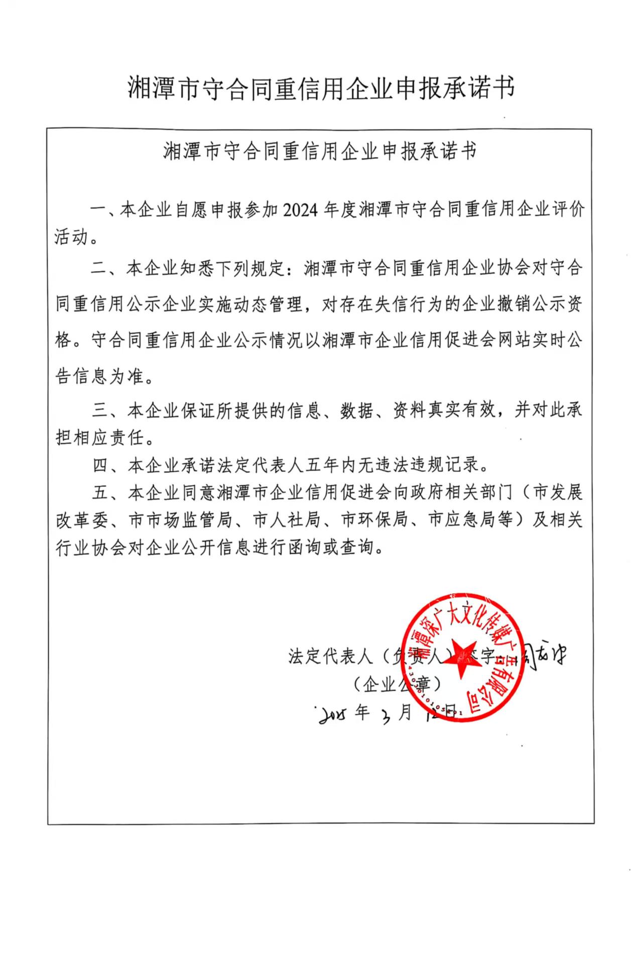本企業(yè)根據(jù)《湘潭市守合同重信用企業(yè)申報(bào)規(guī)定》等編制 2024 年度企業(yè)信用報(bào)告書,并保證本報(bào)告書內(nèi)容真實(shí)、準(zhǔn)確、完整。