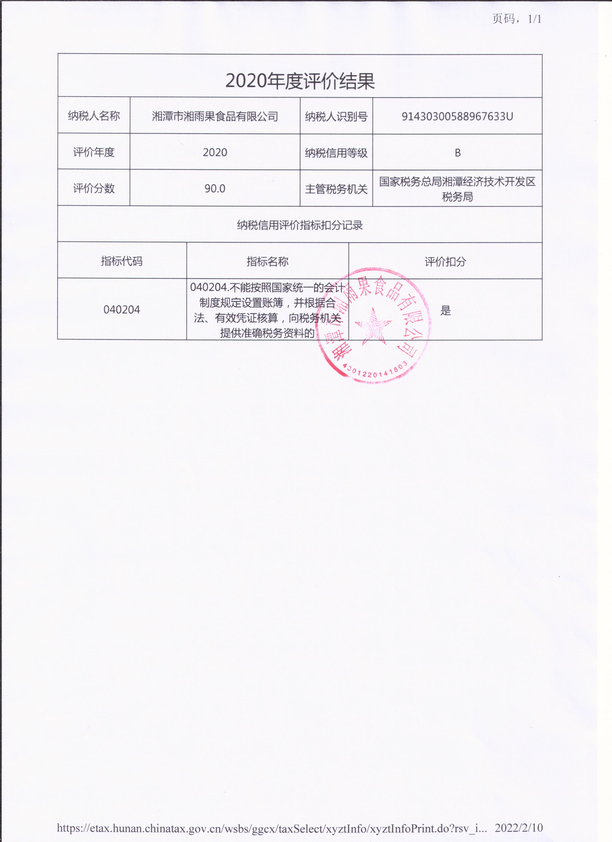 企業(yè)納稅信用等級(jí)報(bào)告: