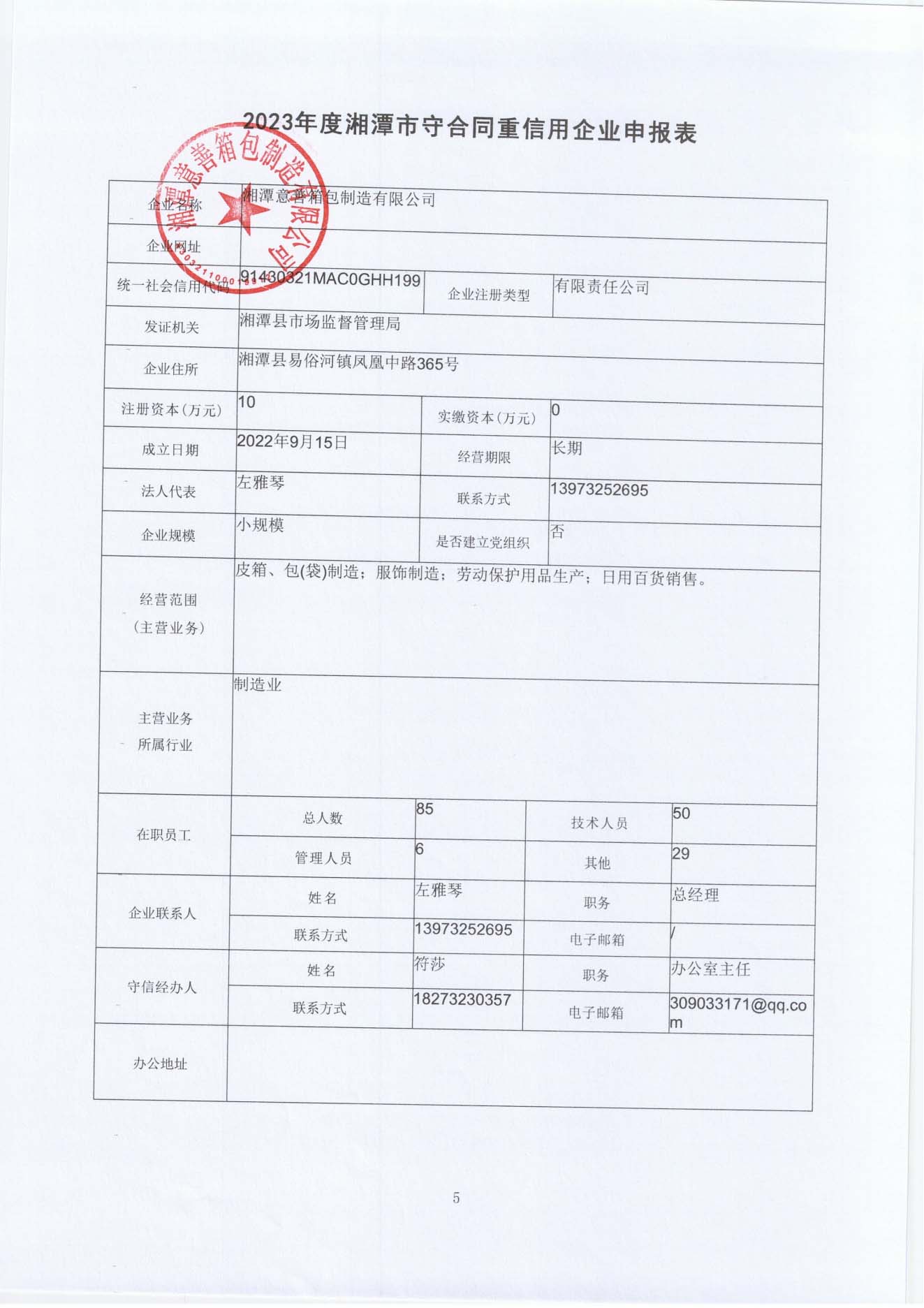 本企業(yè)根據(jù)《湘潭市守合同重信用企業(yè)申報規(guī)定》等編制 2023 年度企業(yè)信用報告書,并保證本報告書內(nèi)容真實、準(zhǔn)確、完整。