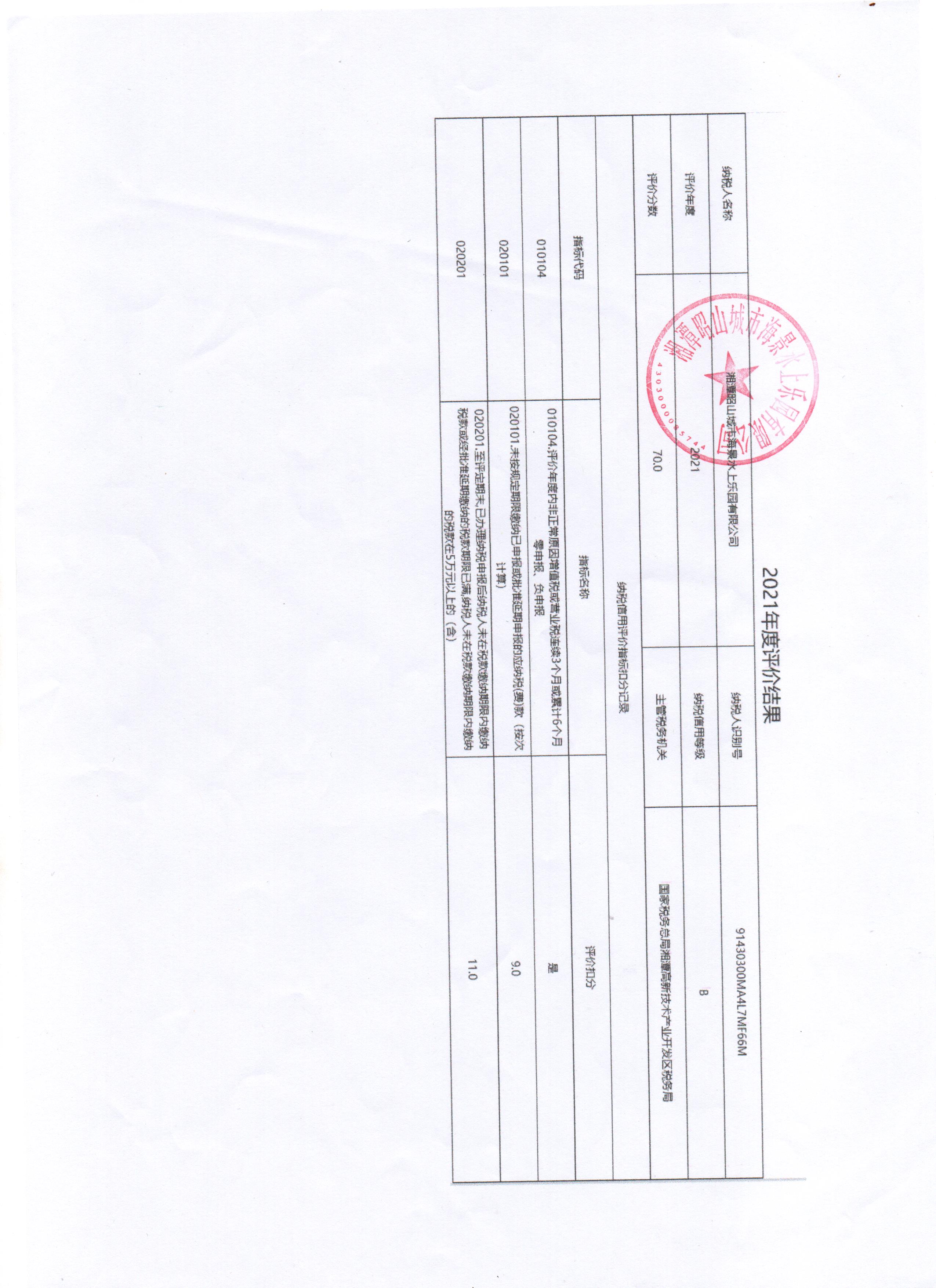 企業(yè)納稅信用等級報告: